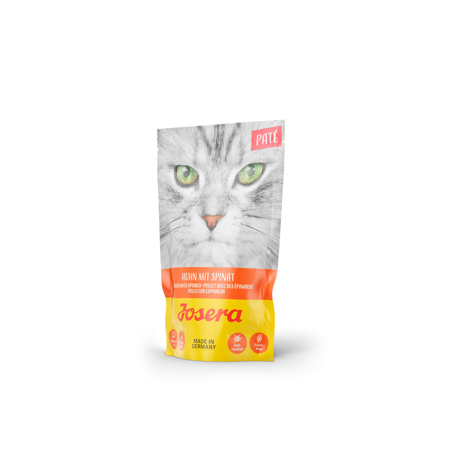 El Paté de Pollo con Espinacas de Josera es un alimento húmedo Súper Premium que ofrece una rica combinación de pollo y espinacas. Esta fórmula sin cereales está diseñada para satisfacer los paladares más exigentes de los gatos adultos, proporcionando una dieta equilibrada y saludable. Con un 70% de pollo, es una fuente excelente de proteínas de alta calidad.